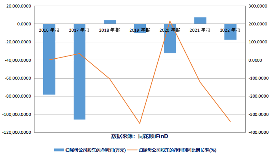 2021年,公司扭亏盈利7331.46万元,随即就在2022年再度亏损1.76亿元。