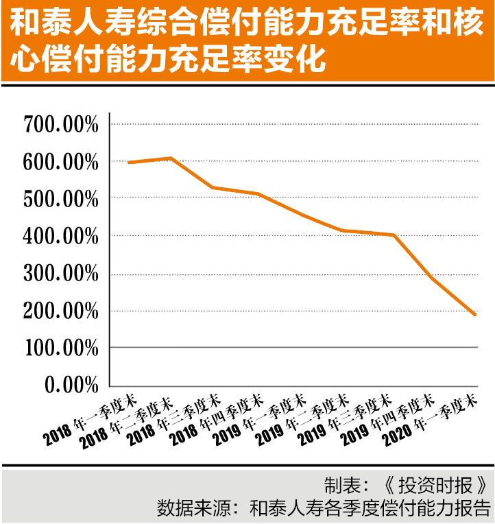 保险业务增长的同时也会造成资本快速消耗。自成立以来,和泰人寿的偿付能力指标下滑较为明显。