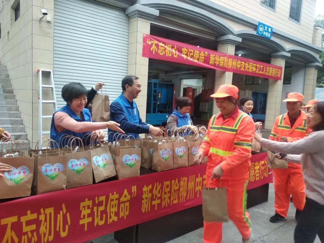 新华保险柳州中支关爱环卫工人志愿者行动。