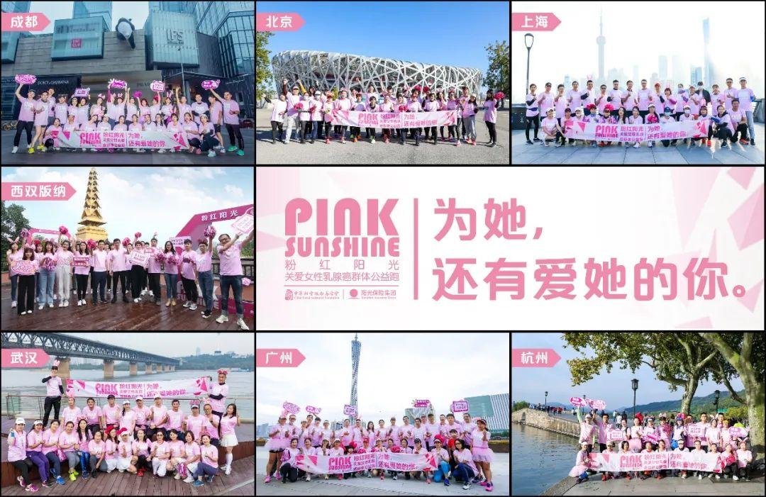 与此同时,由阳光保险联合中华社会救助基金会、在咕咚App上发起的“粉红阳光-关爱女性乳腺癌群体公益跑”也隆重开启。10月24日,全国多地超13万名跑者各就各位,身着粉红元素,以跑步的形式汇聚爱的力量,为关注女性乳腺癌话题发声,点亮女性健康之光。