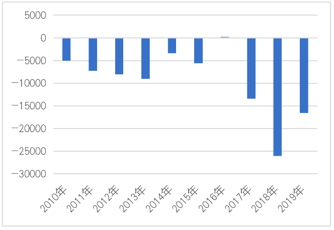 长生人寿在2010年至2019年,只有2016年小幅盈利,其余年份均亏损,十年累计亏损额达9.4亿元