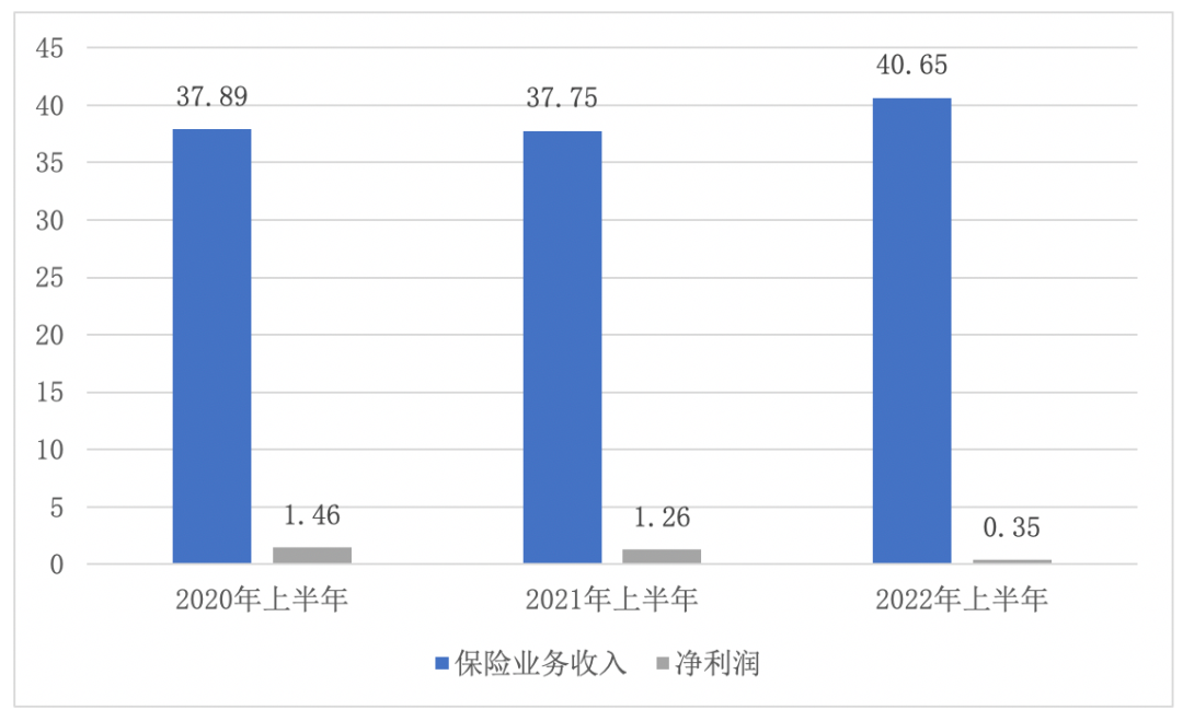 2020年上半年—2022年上半年同方全球人寿保险业务收入和净利润(单位:亿元)