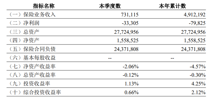 分季度来看,2022年第1—4季度,该公司的保险业务收入分别为208.80亿元、119.43亿元、89.88亿元、73.11亿元,一路走低;净利润分别为1.51亿元、1.27亿元、-7.43亿元、-3.33亿元,下半年两个季度累计亏损10.76亿元,以致全年亏损。