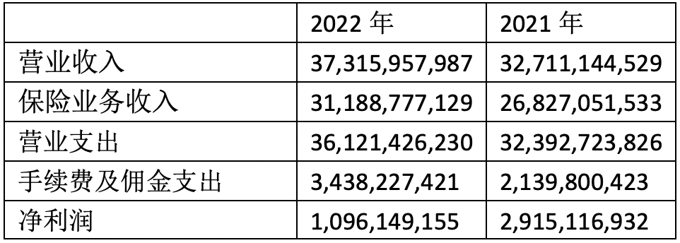2022年年报显示,去年中信保诚人寿的营业收入为373.16亿元,同比增长14.08%,其中保险业务收入为311.89亿元,同比增长16.26%。而净利润为10.96亿元,归属于母公司所有者的净利润为10.76亿元,分别同比大降62.40%、62.88%。