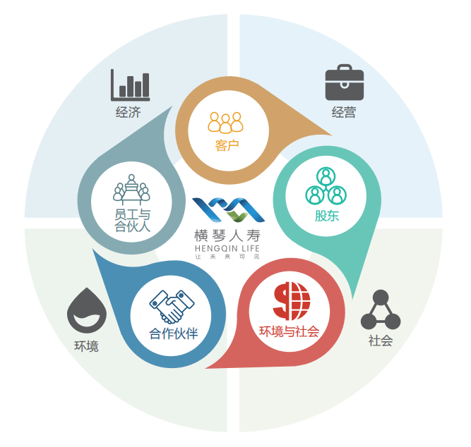 2022年起,横琴人寿将责任聚焦领域做了细致的分解,对公司治理、负责任投资、风险管理、客户服务、产品创新、公众金融宣贯、信息安全、员工发展等方面的履责情况进行年度公示,为公司治理更透明、经营管理更高效筑牢根基。