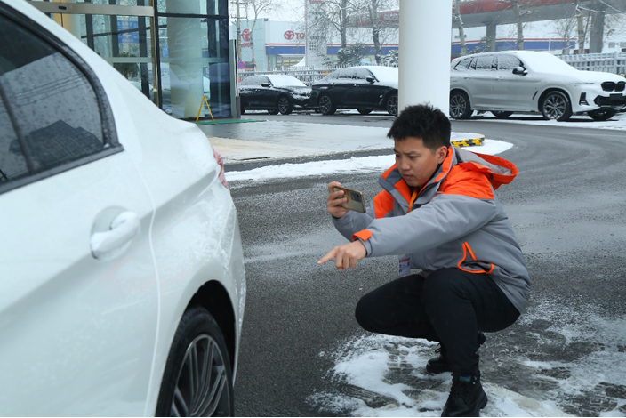 在河北,平安产险河北的理赔员李思贤开始了一天的查勘工作。作为从事查勘工作不到半年的新人,这是他第一次在雪天出任务。在查勘途中,李思贤看到路边停靠着一辆车,车主在旁来回踱步,面露难色。他快走两步上前,主动询问,“有什么需要帮助吗?”。李思贤快速检查,发现车辆熄火是因为蓄电池老化,加之降雪导致的低温天气影响,不能正常启动。他立即拿出工具,用查勘车携带的蓄电池帮助车主紧急接电,车辆很快恢复正常。