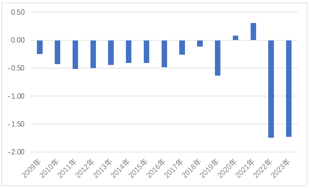 2009年—2023年君龙人寿净利润(亿元)