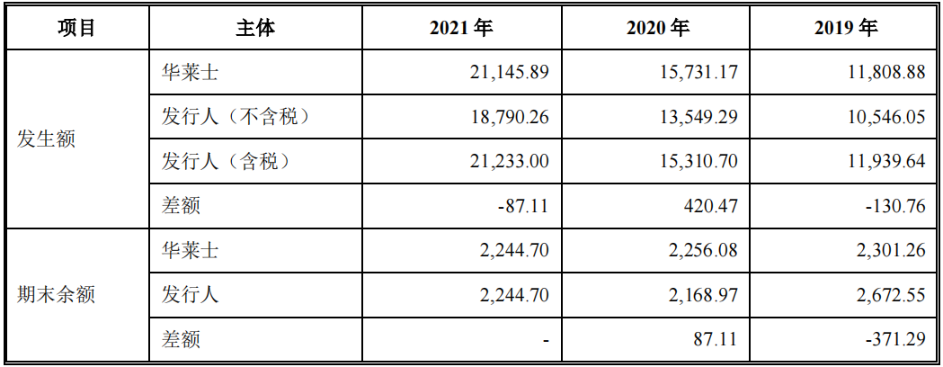 南王科技对此回复称,报告期内,华莱士公开信息中采购数据发生额与南王科技销售数据发生额差额分别为-130.76万元、420.47万元和-87.11万元;华莱士公开信息中采购数据期末余额与公司销售数据期末余额差额分别为-371.29万元、87.11万元和0元。