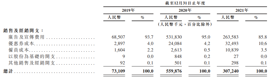 对比收入及利润可以看到,2020年微拍堂收入增长2倍多,但利润却出现了大幅下降,超过6成。这与该公司在2020年大幅增长的销售及经销开支密切相关。