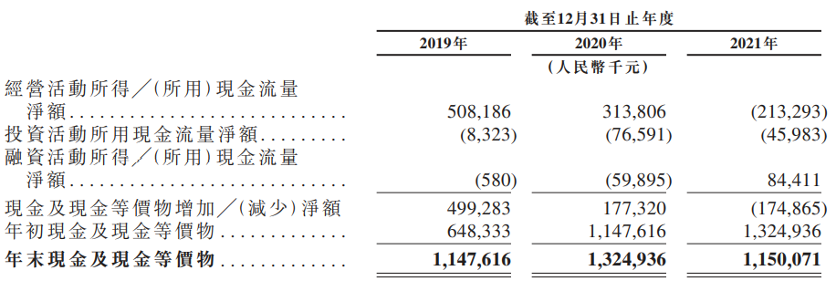 事实上,2021年,该公司经营活动净现金流已与往年不同。招股书数据显示,微拍堂各期经营活动现金流量净额分别为5.08亿元、3.14亿元、-2.13亿元。可以看到,该公司经营净现金流已呈逐年下降趋势,2021年甚至变为现金净流出。