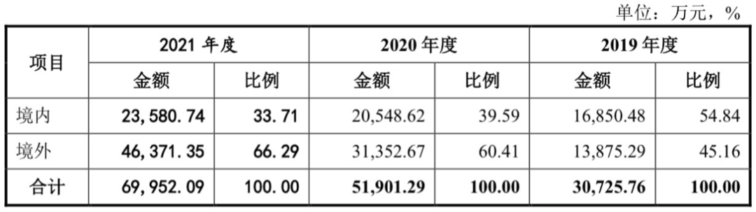 招股书显示,报告期内,斯菱股份主营业务收入中外销金额分别为1.39亿元、3.14亿元和4.64亿元,占主营业务收入的比例呈逐年上升趋势,分别为45.16%、60.41%和66.29%。可以看到,境外营收将会是未来该公司重点投入的方向,但同时,近年来受国际贸易政策及疫情的叠加影响,斯菱股份境外销售可能为其带来三重经营风险。