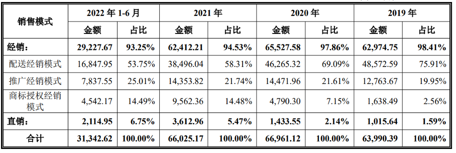 就近些年的趋势来看,万高药业配送经销模式收入占比整体呈下降趋势,推广经销模式与商标授权经销模式收入占比呈增长趋势。