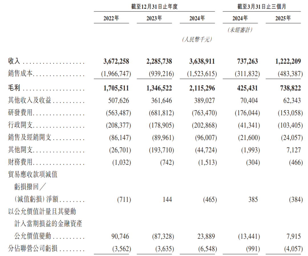 从业绩表现来看,2022年、2023年、2024年,澜起科技营收分别为36.72亿元、22.86亿元、36.39亿元;对应的年内溢利分别为13亿元、4.51亿元、13.41亿元;经调整净利分别为14.51亿元、5.74亿元、14亿元;经调整净利率分别为39.5%、25.1%、38.5%,有所起伏。