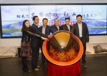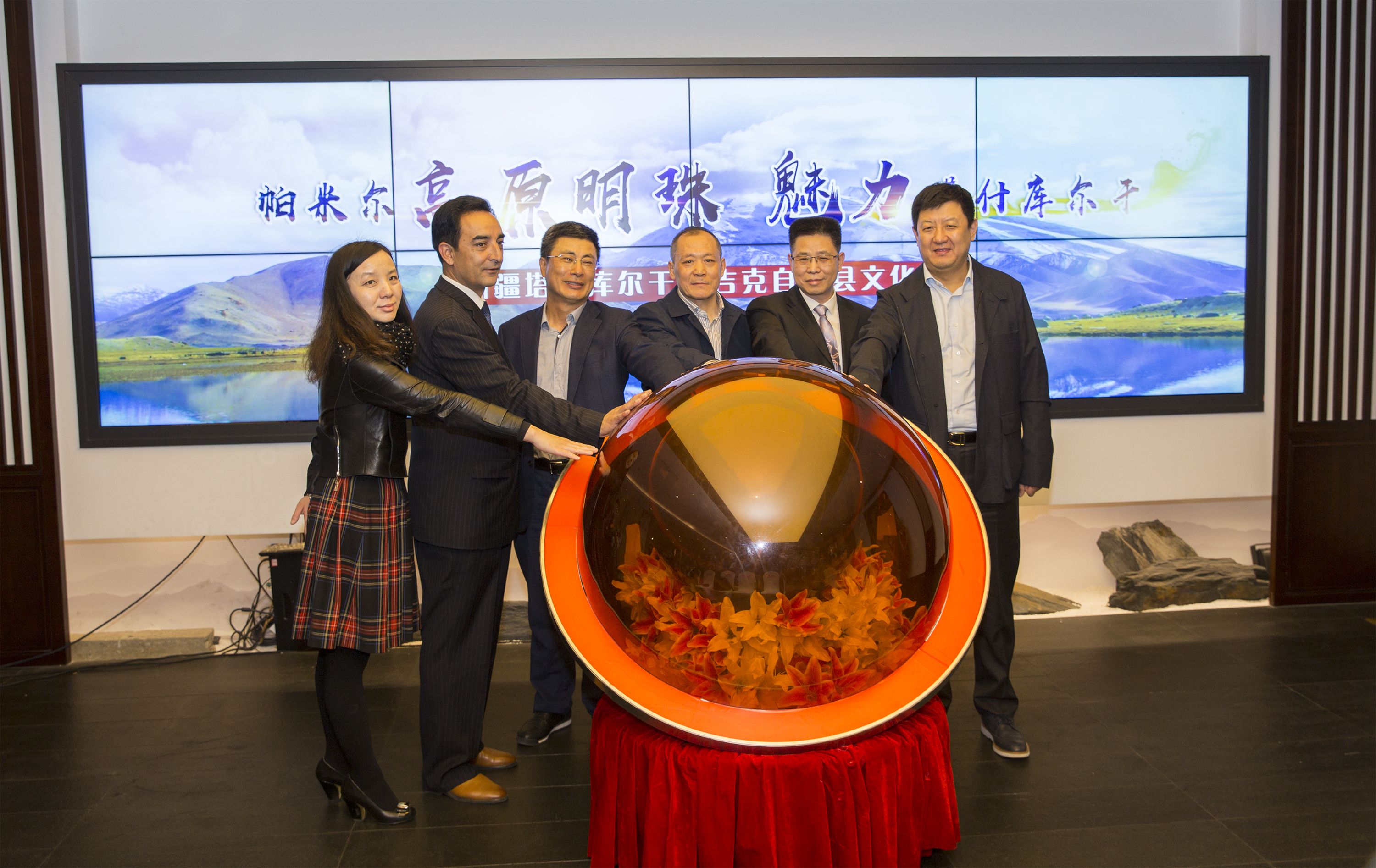 图为证监会、国信证券及非遗保护协会等相关领导共同启动援疆项目水晶球。