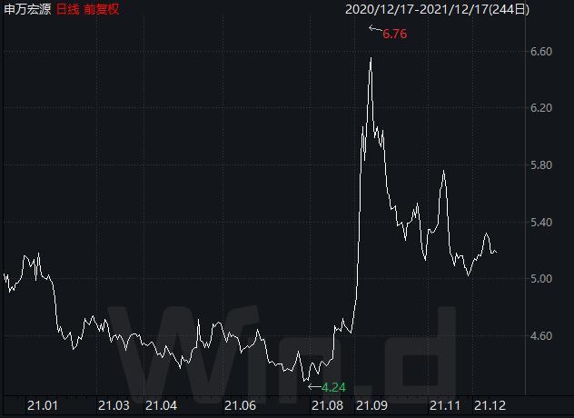 申万宏源近一年股价走势(前复权,元)