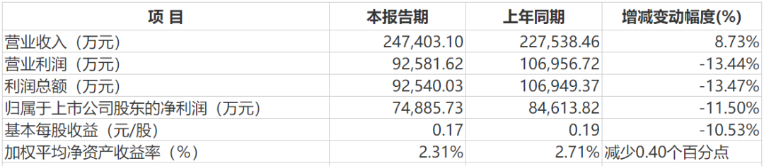 国元证券7月11日晚间披露的2022年半年度业绩快报显示,该公司上半年实现营业收入24.74 亿元,与上年同期相比增长8.73%;实现归属于上市公司股东的净利润7.49亿元,与上年同期相比降低11.50%;加权平均净资产收益率为2.31%,与上年同期相比仍减少0.40个百分点。