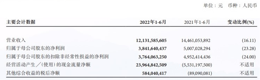 据中金公司半年报,今年上半年,该公司营业收入同比降16.11%,归属于母公司股东的净利润同比降23.28%,降幅双双大于行业。