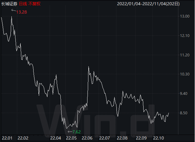 截至11月4日收盘,长城证券股价年内跌去33.01%,跌幅在A股券商板块中居第七