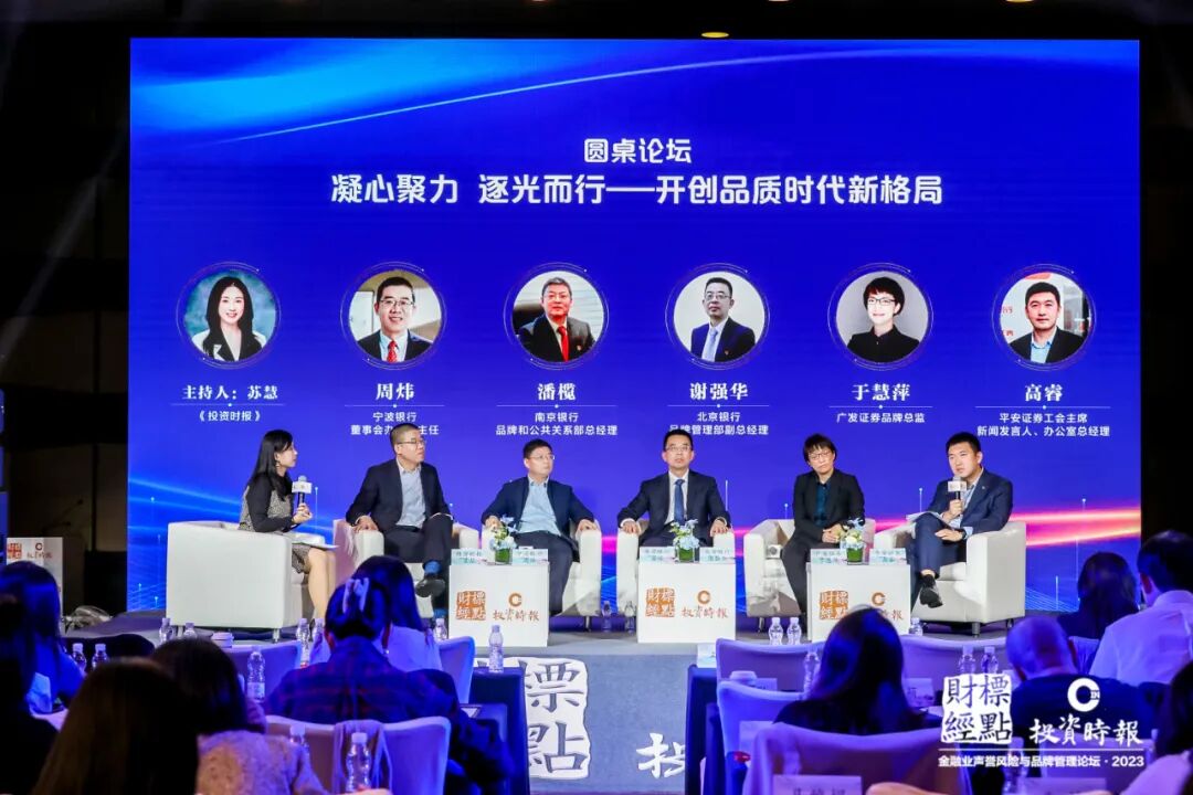 2023年4月25日,由宁波银行特别支持,《投资时报》、标点财经研究院联合举办了“金融业声誉风险与品牌管理论坛·2023”。来自银行、保险、券商领域近百位金融机构的品牌公关管理及声誉风险管理负责人,声誉风险管理理论与实务编写组核心成员,以及跨界头部上市公司相关负责人齐聚一堂,围绕企业声誉风险管理和品牌公关管理的多个议题展开了深入的讨论与交流。