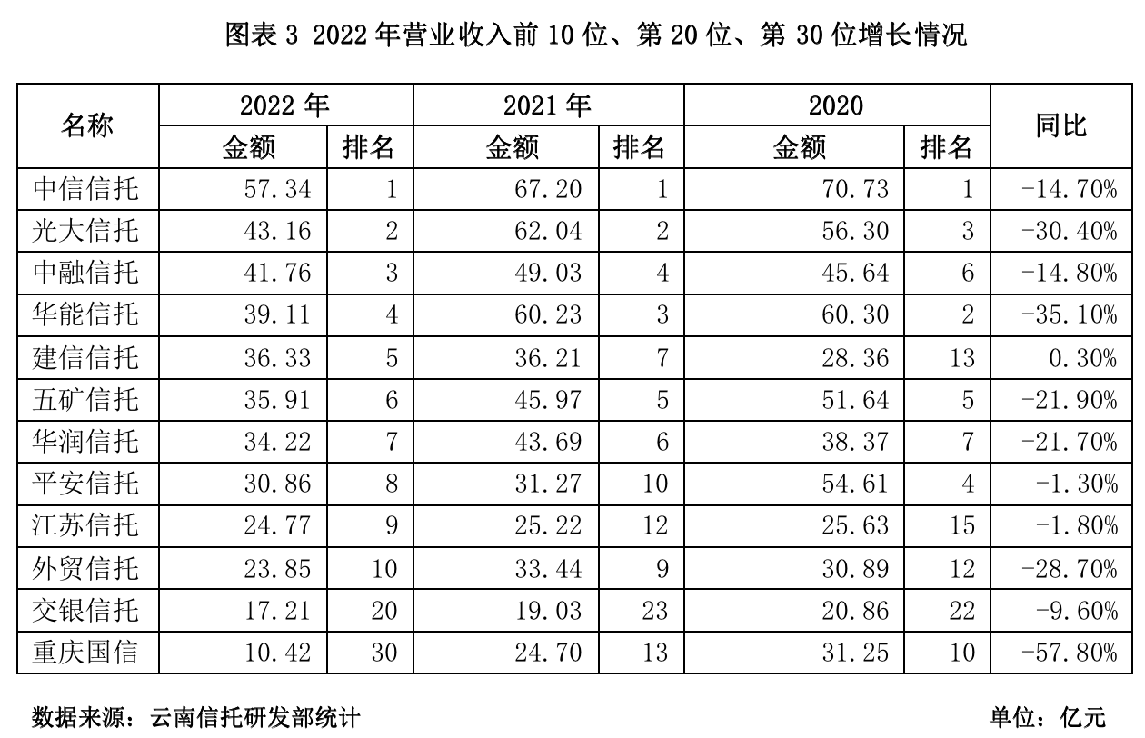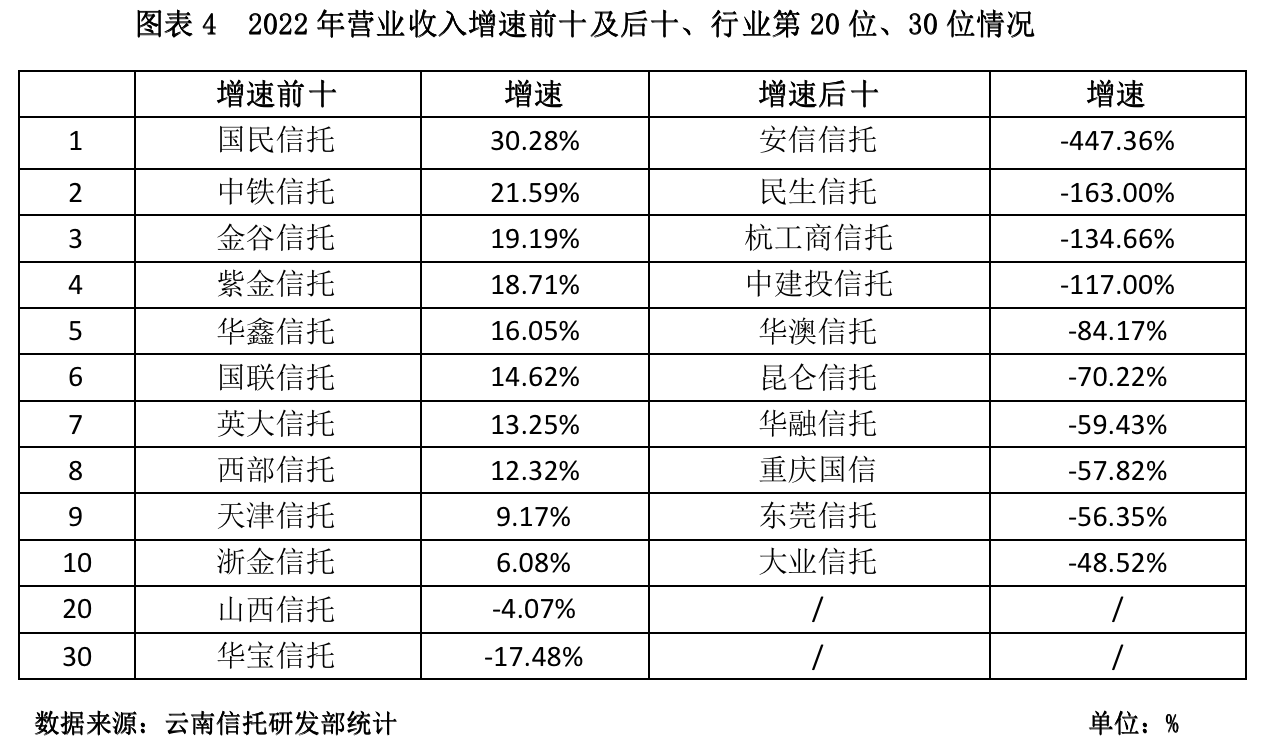 3. 行业内仅23.33%公司正增长,信托业务收入创收承压