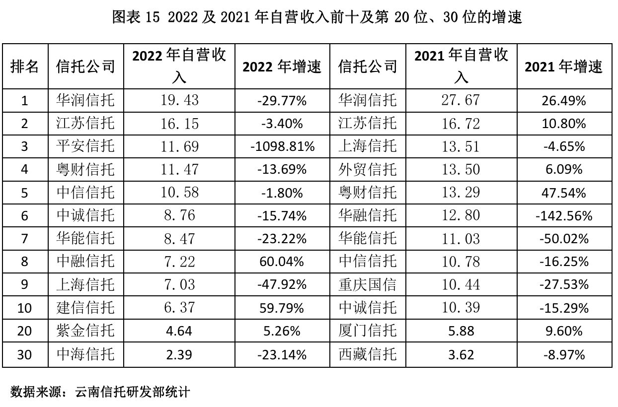 3.自营收入高增长信托公司明显减少,两极分化趋势近一步加剧