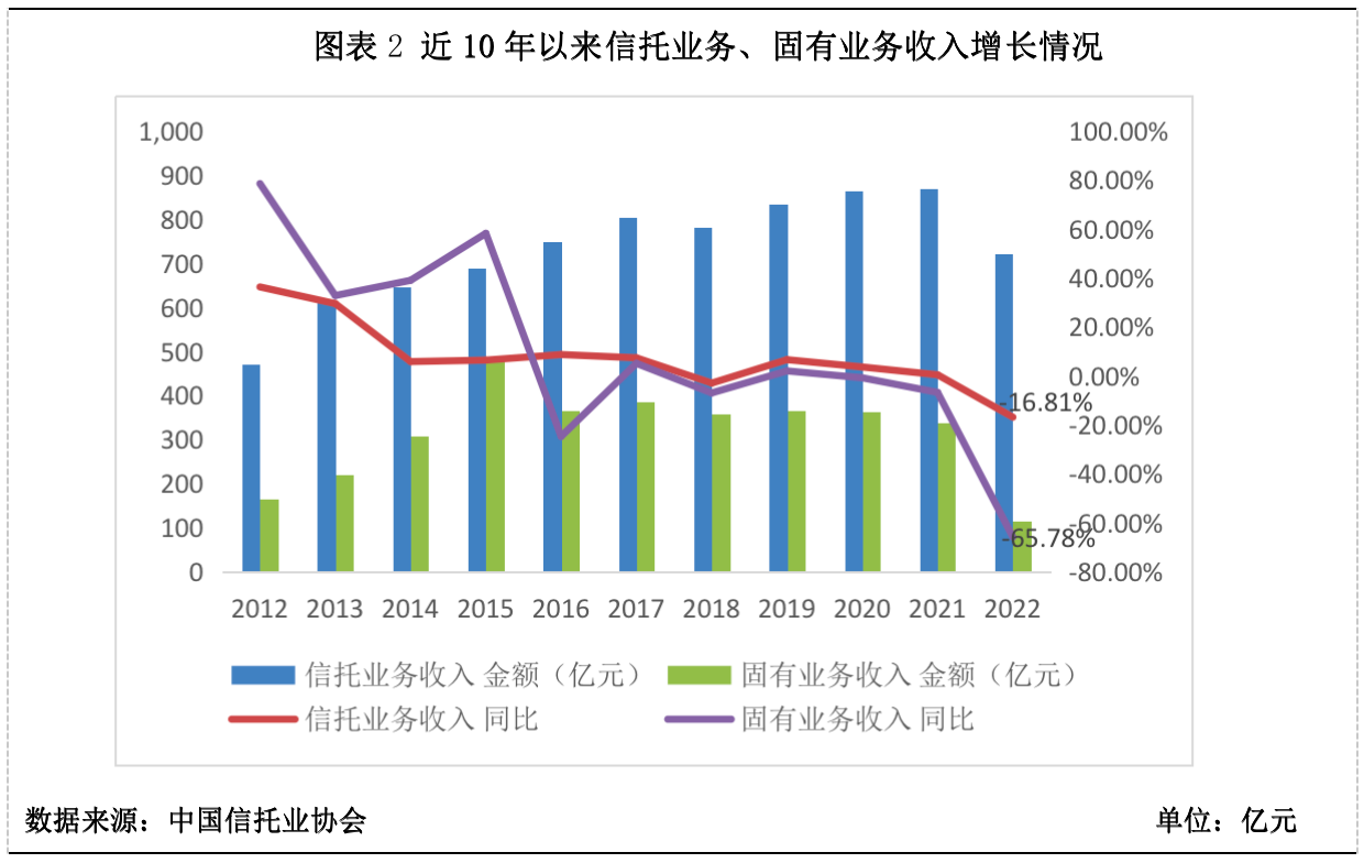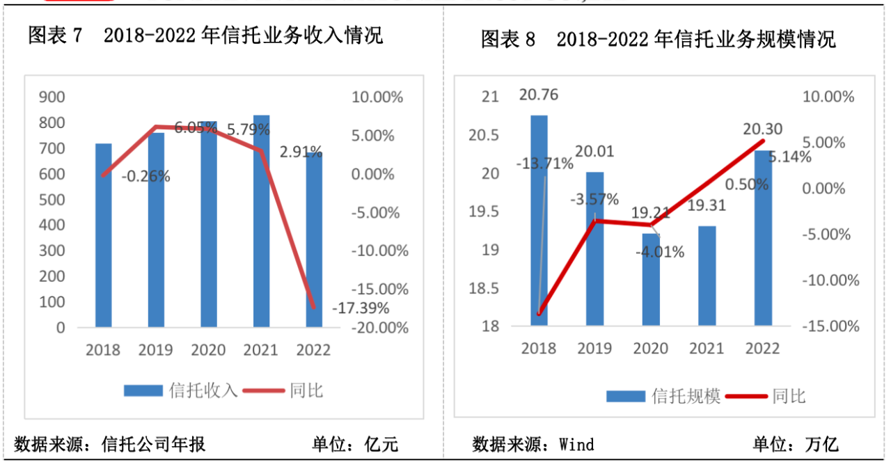 二、 行业业务形态变化同时信托报酬下降,致信托收入持续下滑