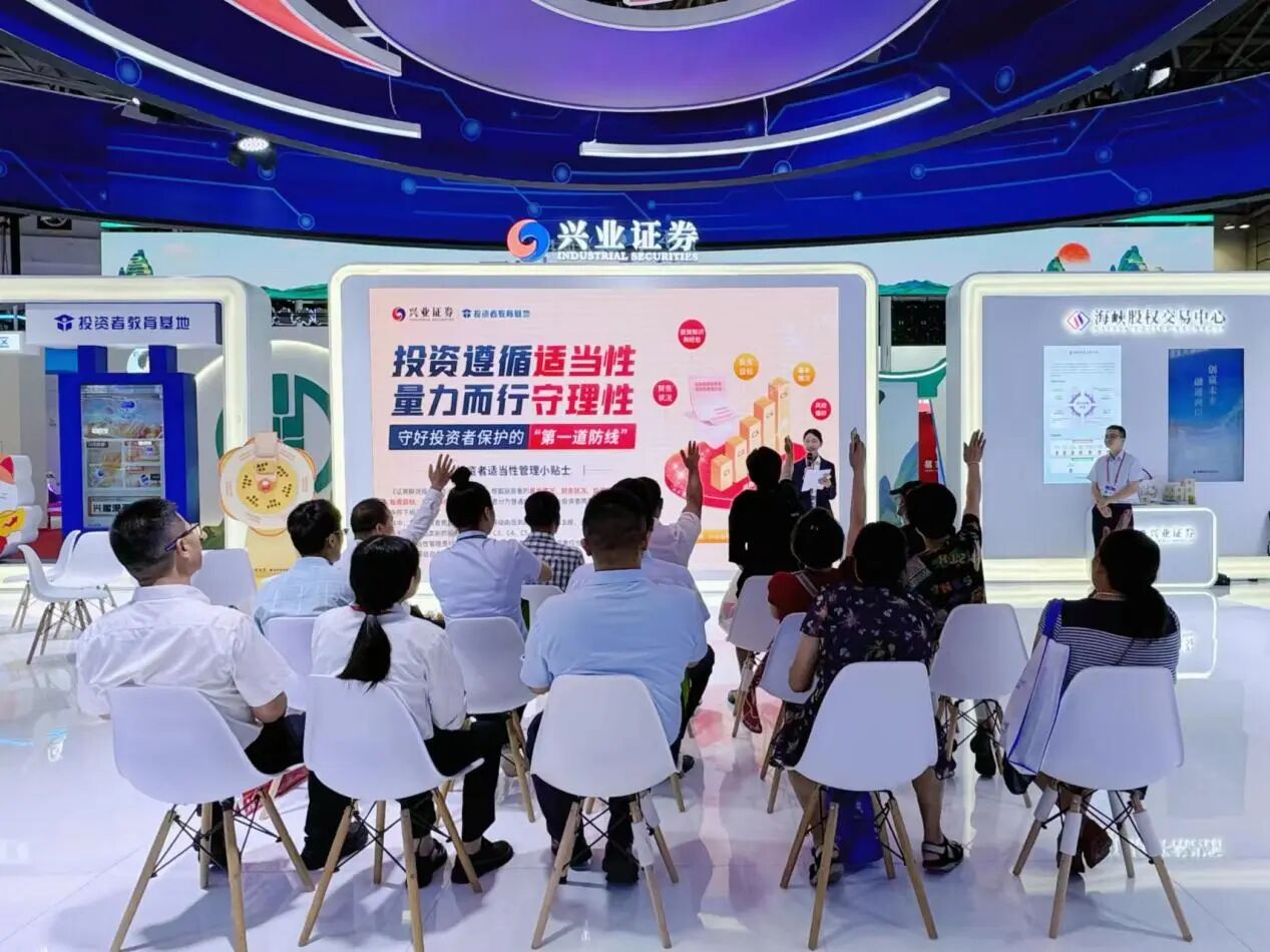本届兴业证券集团展区重点展示公司立足资本市场主责主业,践行“金融为民”初心使命,做好科技金融、绿色金融、普惠金融、养老金融、数字金融五篇大文章,围绕产业转型、民营经济、乡村振兴和民生福祉等重点工作,打造金融强省兴证样本。进一步拓宽闽台金融合作领域,深化对台金融服务的举措和成效,探索两岸金融合作新模式,助力打造两岸金融融合发展“福建品牌”。现场设置海峡股权交易专区,展示“台资板”“专精特新”专板;设置投教专区,陪伴式投教服务品牌“兴投教”,以 “有趣、有料、有价值”的形式打造全天候、全方位的沉浸式投教服务体验。