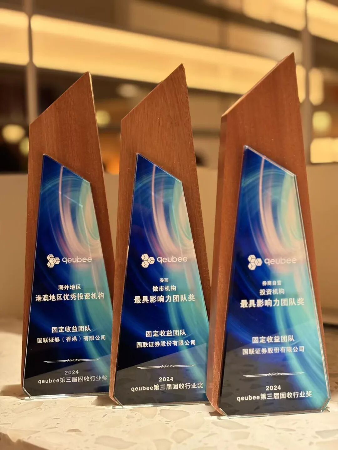 1月16日,Qeubee2024年第三届固收行业奖颁典礼在深圳举行。国联证券固定收益部在数百家参与机构中脱颖而出,荣获“券商做市机构最具影响力团队奖”“海外地区-港澳地区优秀投资机构奖”“券商自营投资机构最具影响力团队奖”三大奖项!